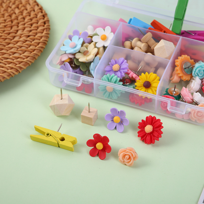 樹脂花画鋲五格セット木工字釘六弁花太陽花薔薇画鋲ピンクリップセット