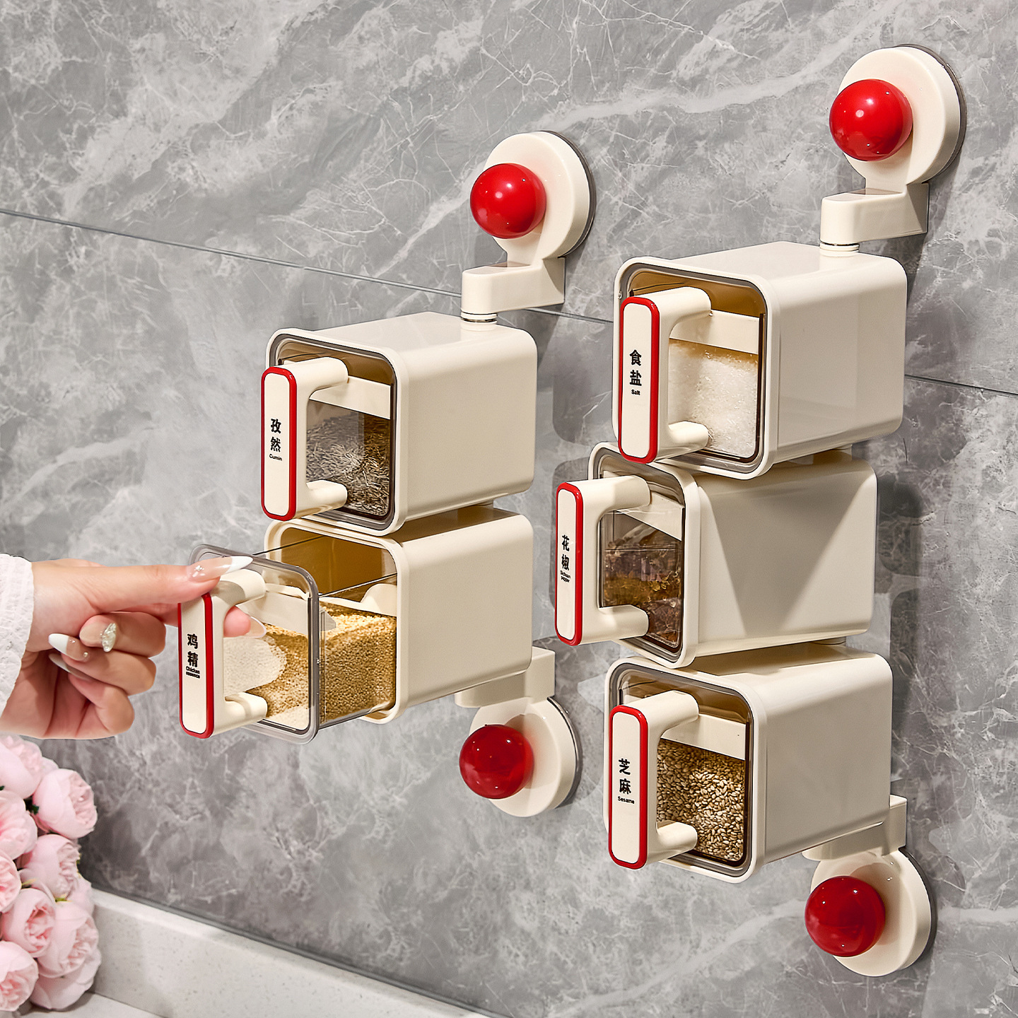 吸盤回転調味料ボックス壁掛けホームキッチンハイエンドの新しいオールインワンマルチコンパートメント収納ボックス塩瓶調味料瓶