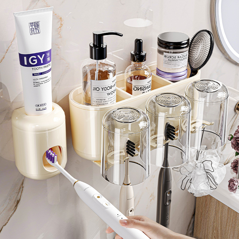 2024新型電動歯ブラシホルダー穴なし壁掛け歯磨き粉うがいカップ洗面カップセット