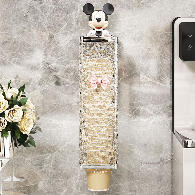 高颜値使い捨てコップ取杯器壁掛け式穴なし家庭用冷水機紙コップ収納棚取杯棚