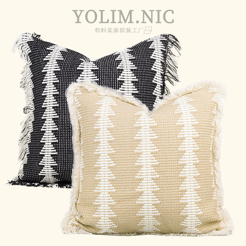 北欧風クリスマスツリー抱き枕ソファリビングクッションベージュブラックフリンジクッションベッドサイド背もたれ民宿クッション