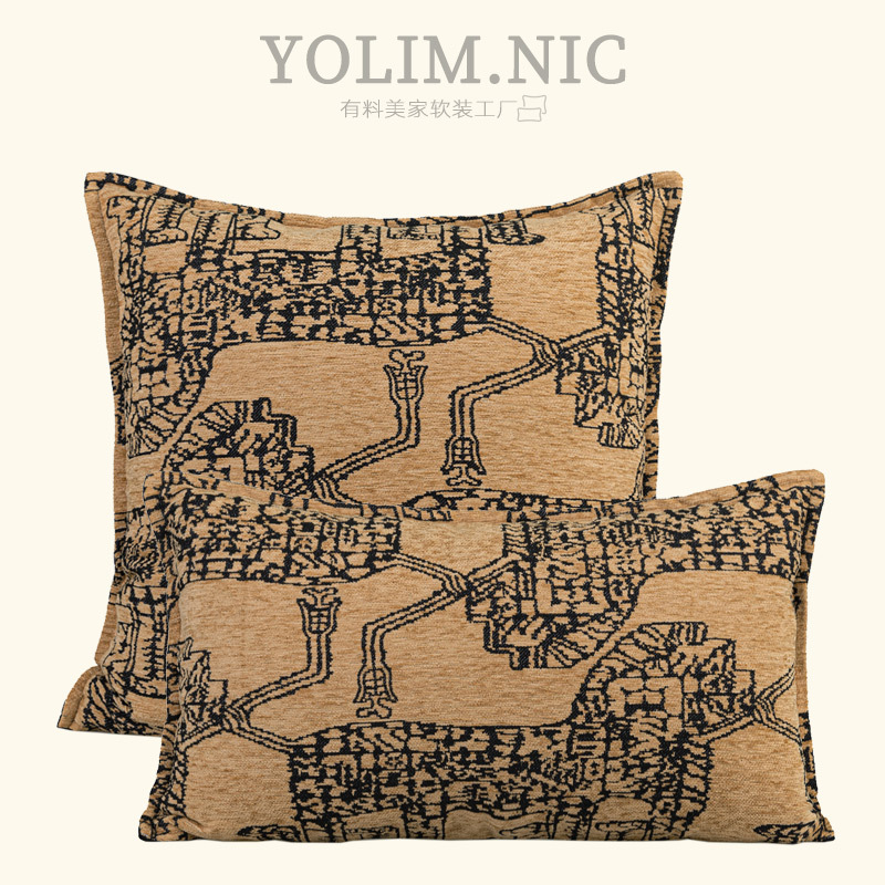 フレンチスタイルの中古風高級感クッション姜黄色ライオンクッションリビングソファ抱き枕ホテルサンプルプレート間クッション