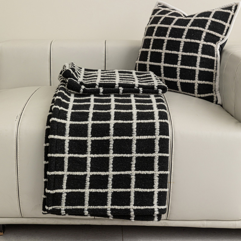 現代のシンプルな白黒の格子のウールは絨毯を掛けます。