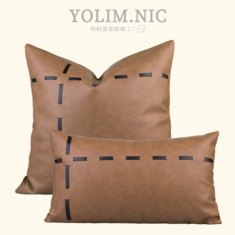 現代のシンプルなサンプルプレート間の装飾抱き枕オレンジ色の茶色の皮条クッション