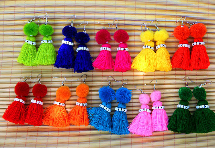 民族風アクセサリー手作りボヘミアンラッパ花流蘇イヤリング欧米の新型レトロ毛糸イヤリング