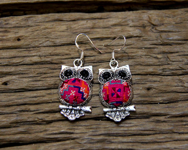 民族風イヤリング刺繍フクロウ流蘇耳飾り手作りレトロ古い刺繍苗刺繍苗銀イヤリング