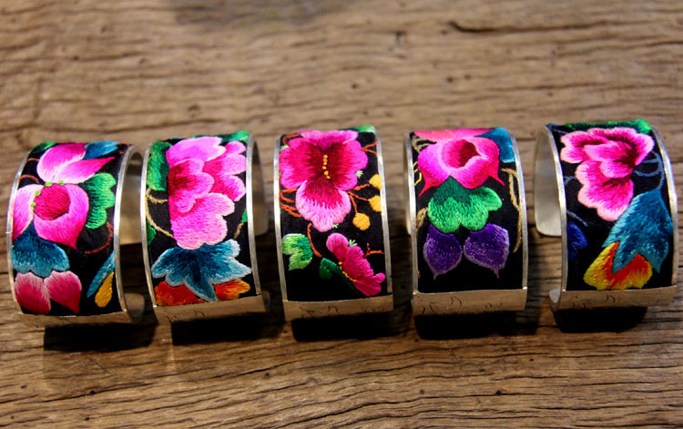 民族風刺繍ブレスレット手串雲南手作り古い刺繍ジュエリー (模様混配)