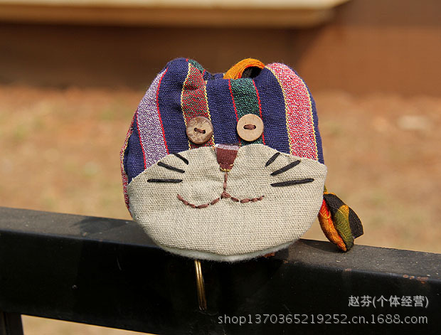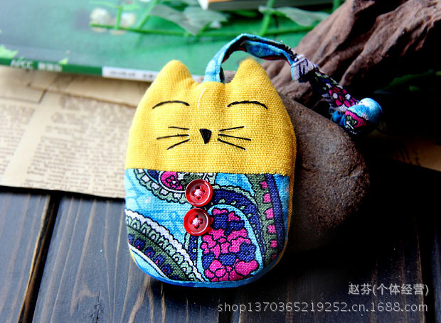 ファッション雲南民族風手作り布芸キーホルダー創意引き出し式かわいい子猫キーホルダーメーカー卸売り