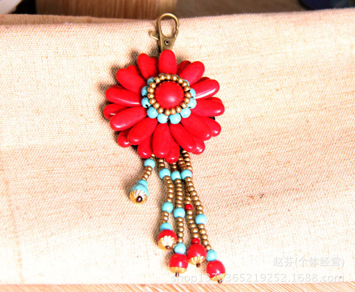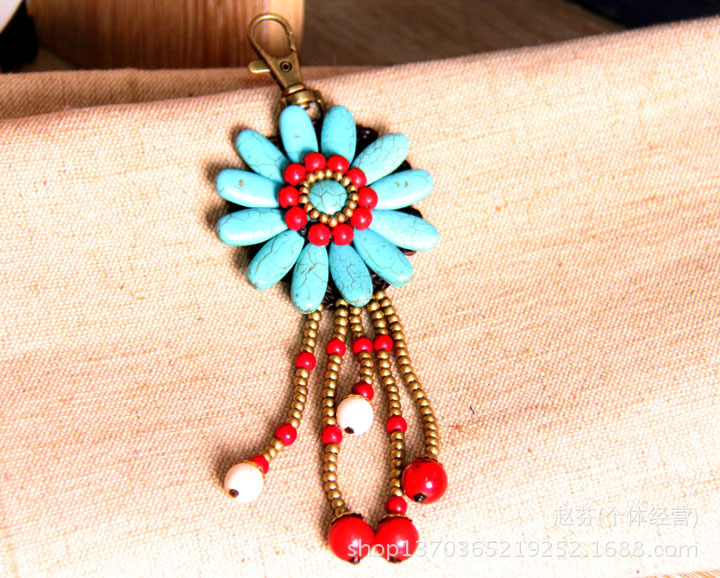 タイ風アクセサリー民族風単層松石花手作りキーホルダーメーカー卸売り