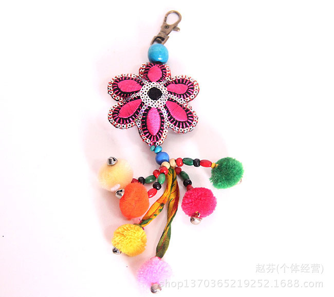 民族風六弁花キーホルダー手作り布芸ストラップタイ