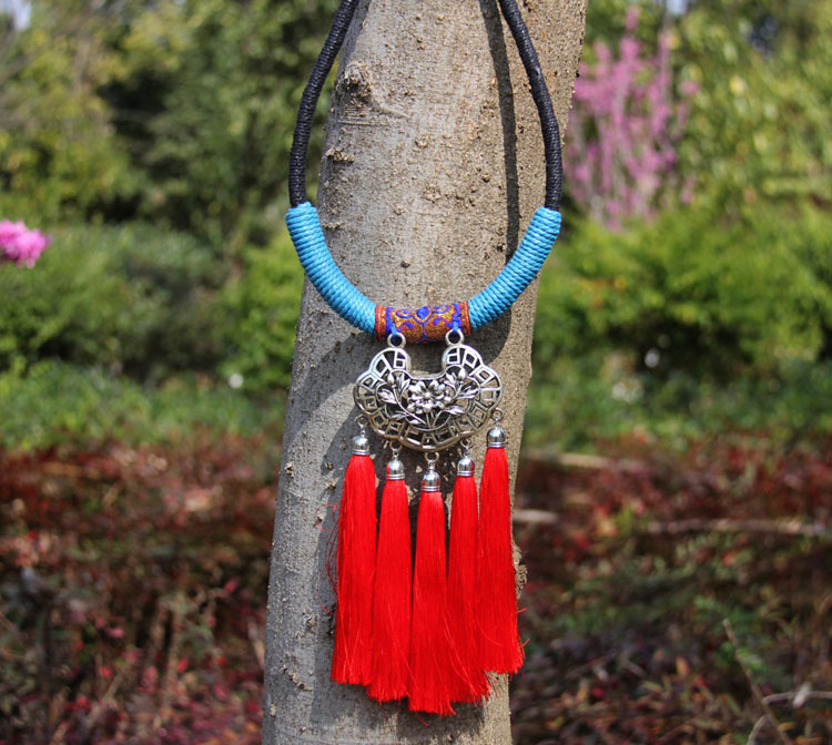透かし彫りの長命鎖流蘇ネックレス中国風復古誇張民族風セーターネックレスメーカー卸売り