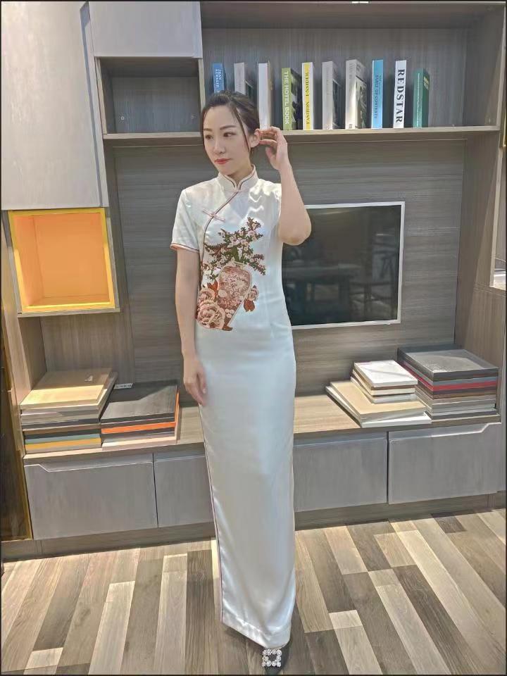 2023春の新型超垂防シワ改良長型ショーチャイナドレスのマナー演出チャイナドレスの端正な大気