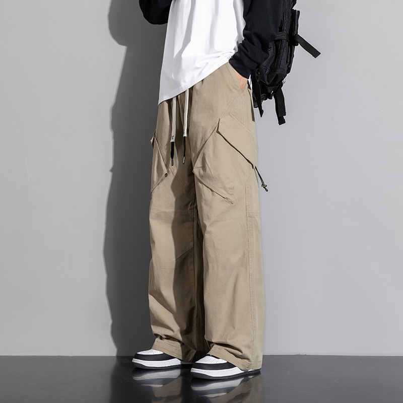 ゆったりした工装ズボン日本式のワイドパンツ男女のファッションブランドの工装ズボンのズボン