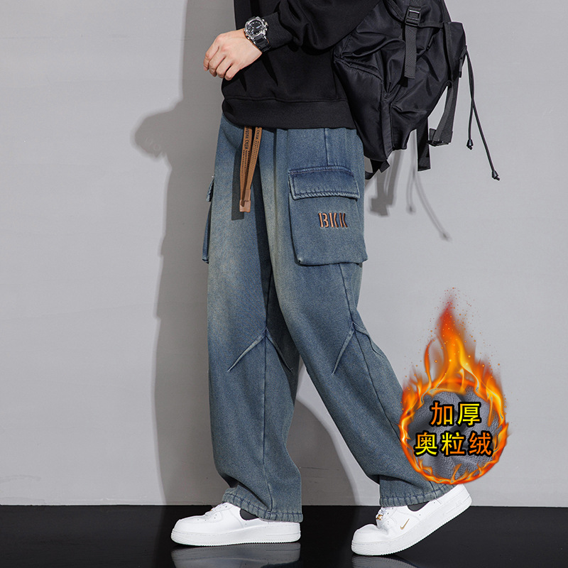 夏の人気男性パンツファッション香港風デニムパンツ韓国版ゆるいシンプルな男性カジュアルパンツ