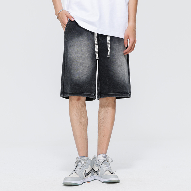 アメリカのレトロな水洗いの重いポンドのデニムの半ズボンの男性の夏のごろつきのハンサムなブランドのゆったりしているまっすぐな筒のカジュアルな5分の1の中でズボン