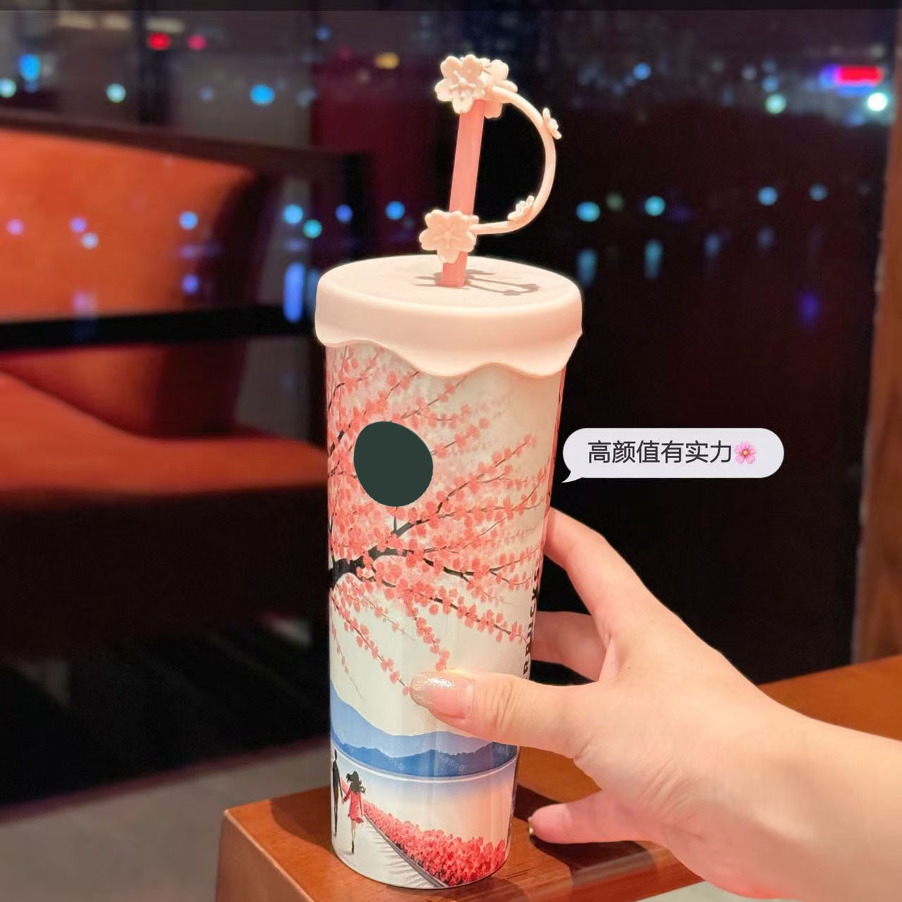 スターダディ 桜恋人 ストローカップ 305ステンレス製 水筒 500ml 大容量 オフィスコーヒーカップ