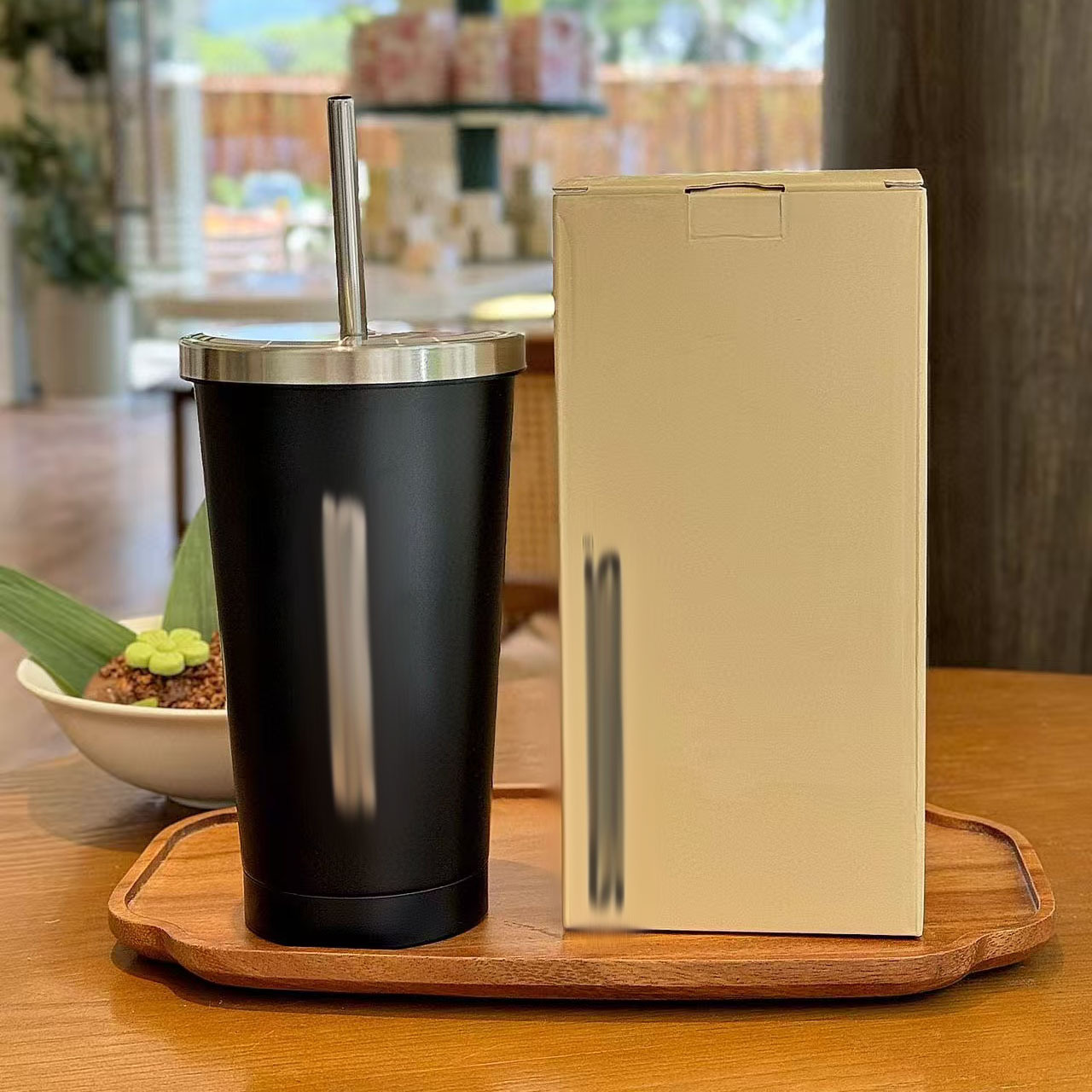 スターダッド ブラックダイヤモンド ストローカップ 304 ステンレス鋼 車用コーヒーカップ オフィスウォーターカップ 500ml