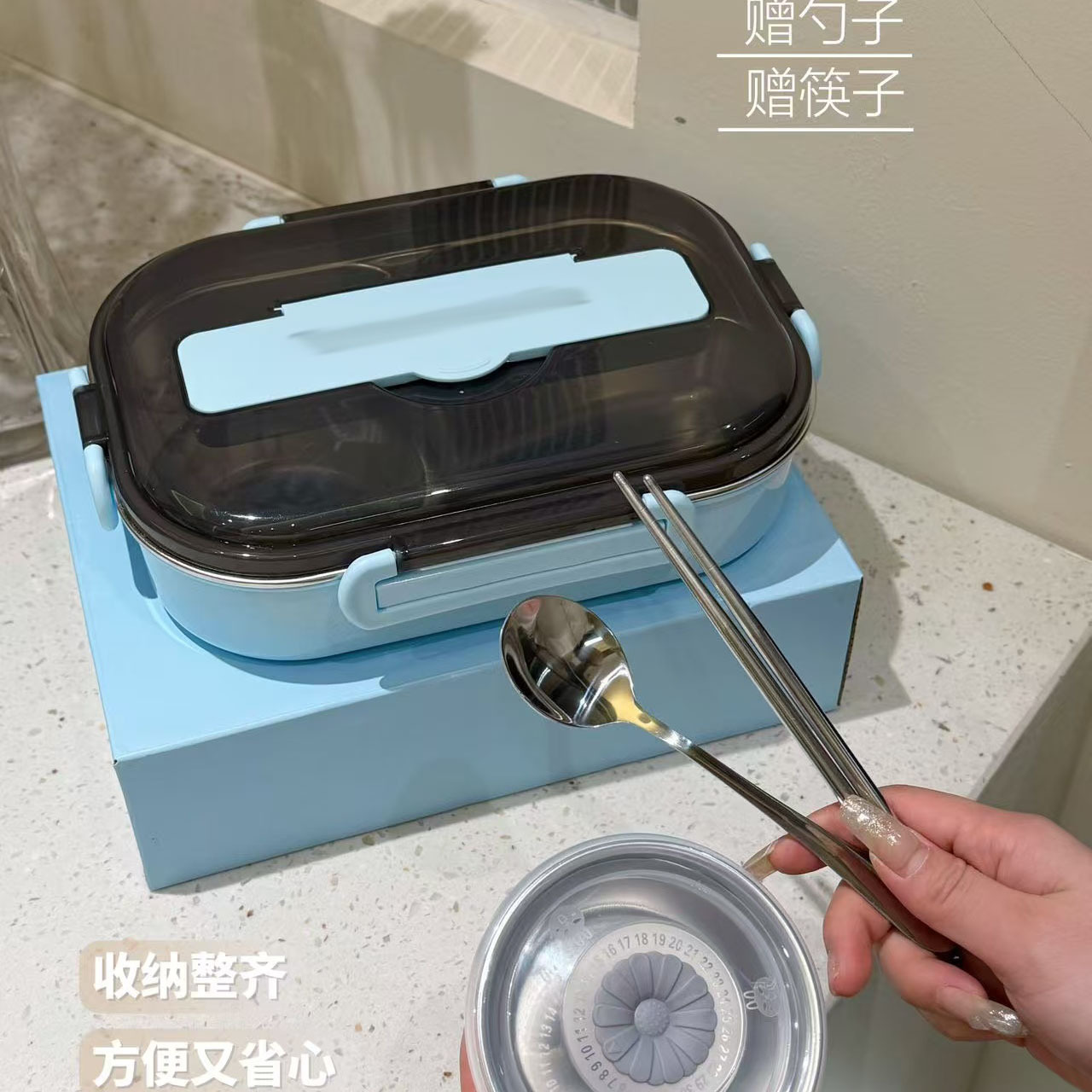 芙青携帯弁当箱学生弁当箱角型分格ランチ弁当箱304ステンレス保温箱