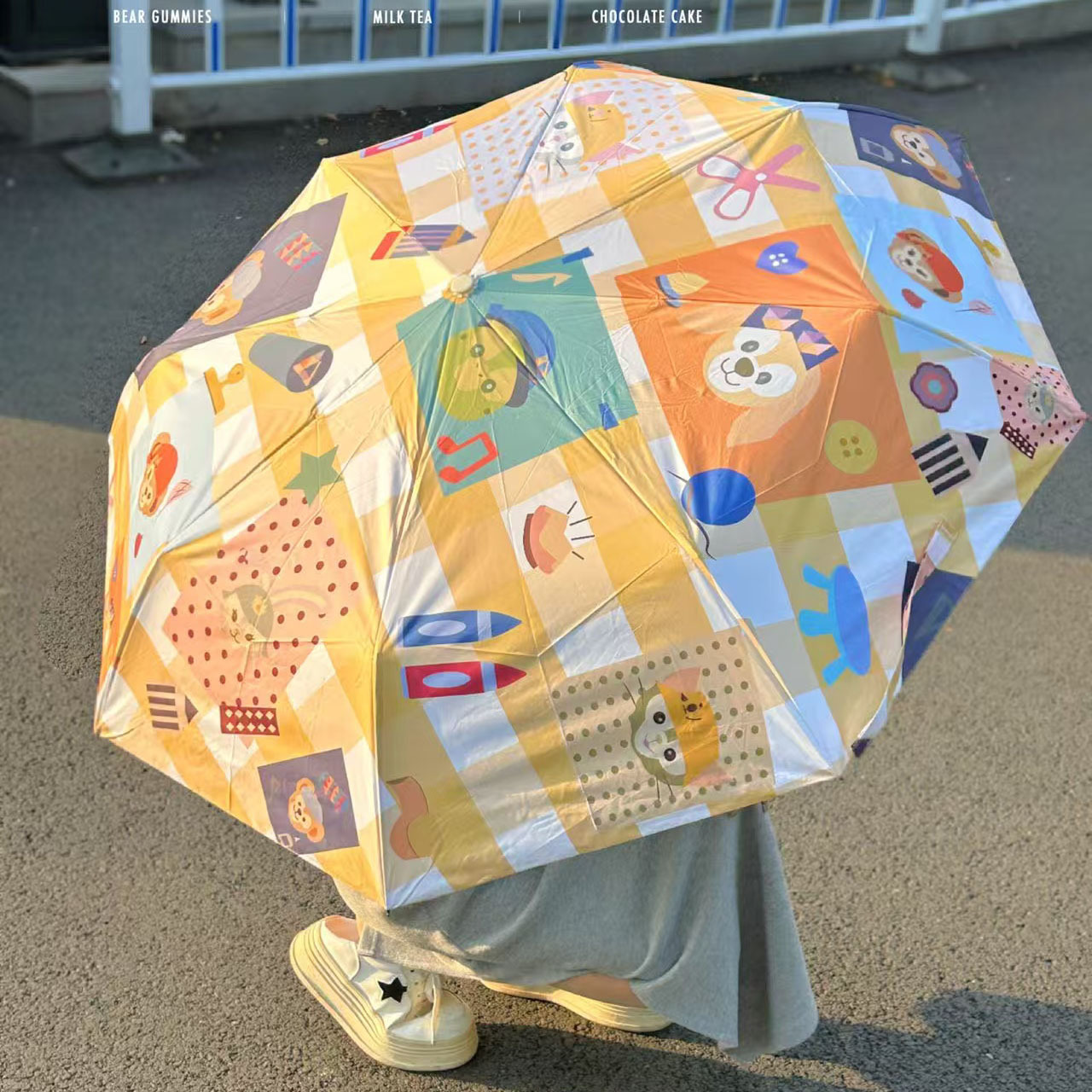 星黛露大家族は全自動日傘日傘晴れ傘折り畳み黒ゴム日焼け止め紫外線防止