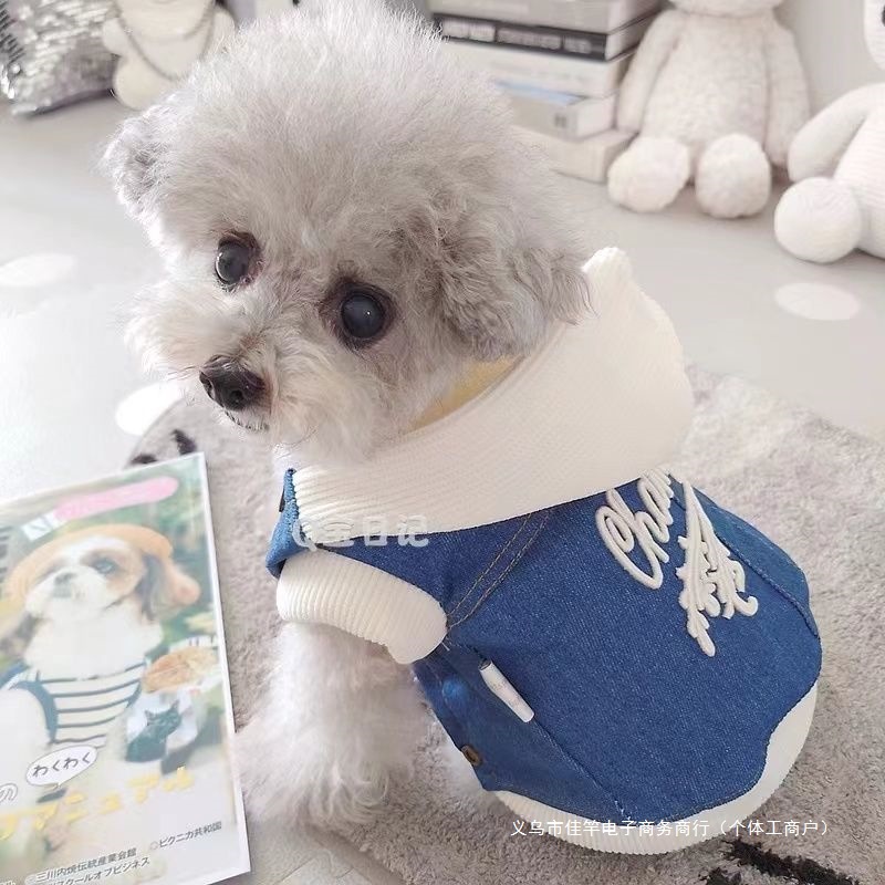 牽引可能なペットビションシュナウザーテディ犬服秋と冬服秋デニムフード付きスウェットシャツ小さなギフト