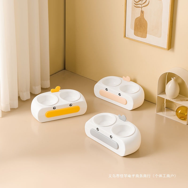 新しいセラミック猫ペット犬水飲み場一体型給餌水盆地自動ダブルボウル飲料水猫ボウル犬ボウルなし