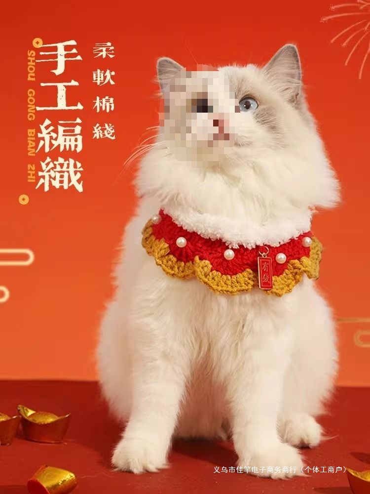猫のマフラーは首輪を編みます。ペットは首を囲みます。
