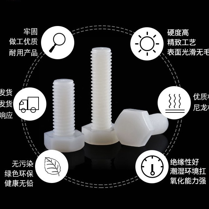 M6 PA66 ナイロン外側六角ボルト外側六角プラスチックネジ PA66 絶縁成形プラスチックネジ黒と白