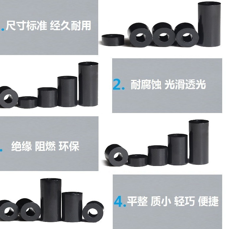 6.3-4.2x18mm m4ナイロン直通柱プラスチック中空支柱led絶縁隔離柱間仕切り柱