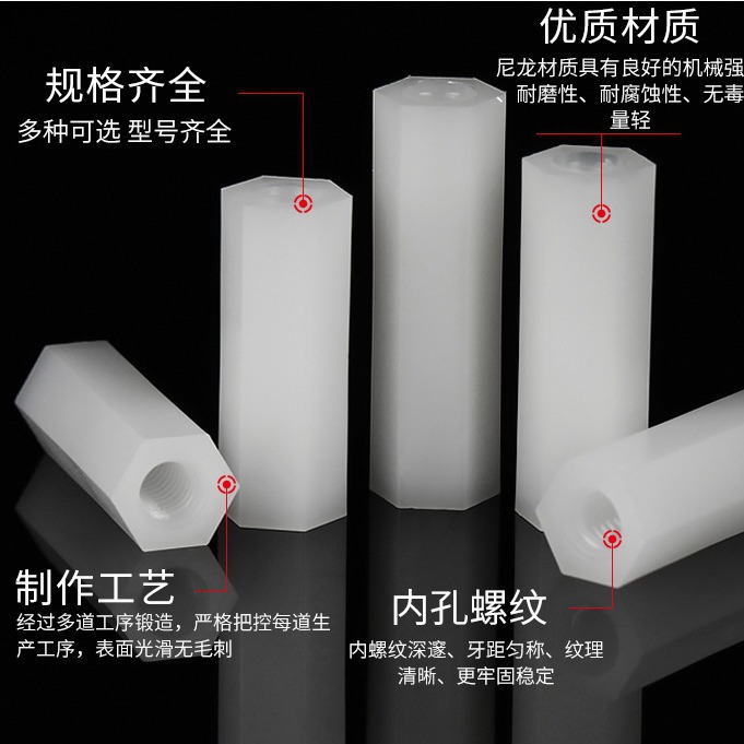 供給m 5ナイロン六角双通柱プラスチック六角隔離柱ナイロン間隔柱マット高支柱ホワイト