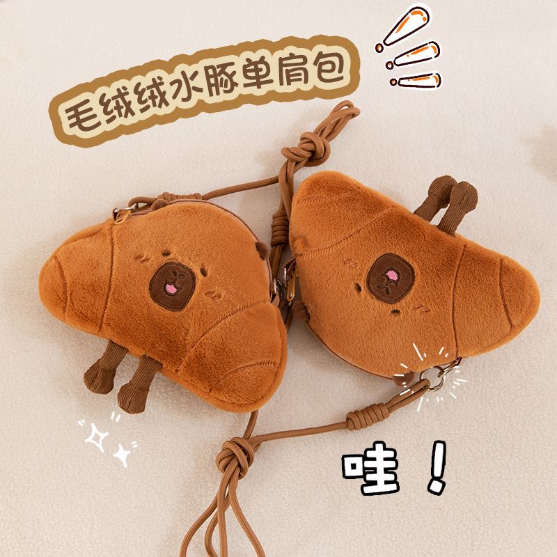 カピバラクロスボディバッグかわいい 2025 新しい漫画クリエイティブカピバラガールショルダーバッグクロワッサンバッグポータブル