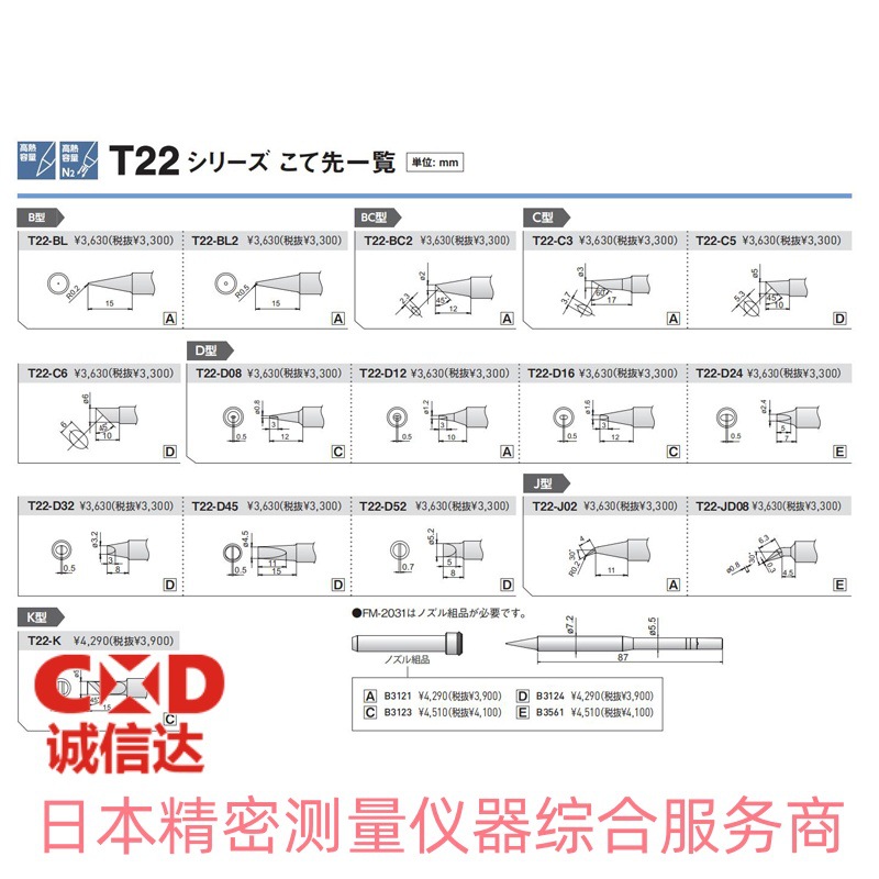 オリジナル日本 HAKKO 白色光 T33-D24 D32 D5 D6 T33-1610 T33-1611 ルオ鉄ヘッド