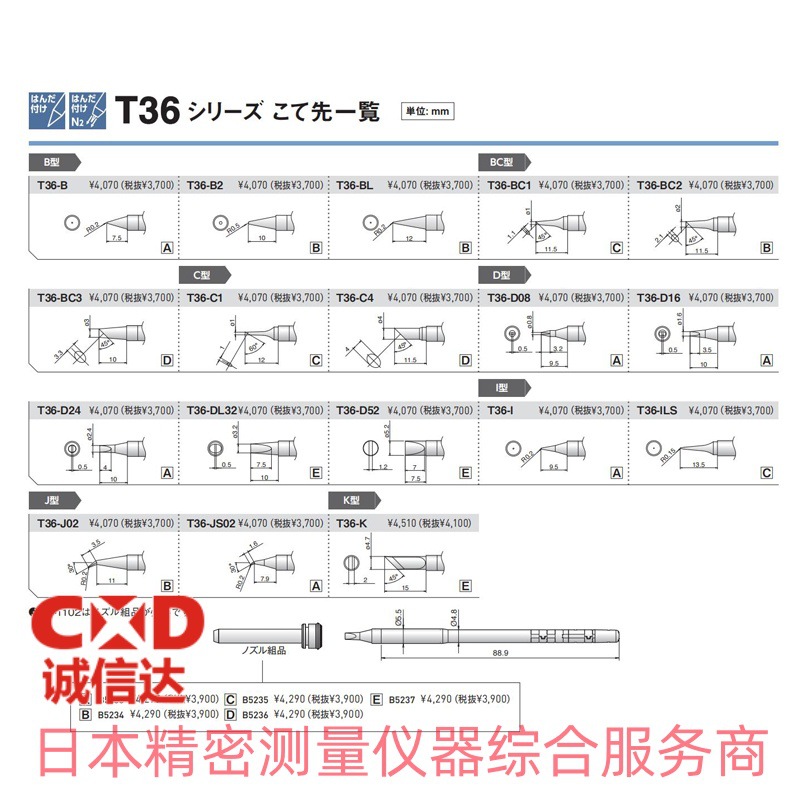 オリジナル日本 HAKKO 白色光 T36-D08 D16 D24 D52 DL32 はんだごてヘッド高品質輸入