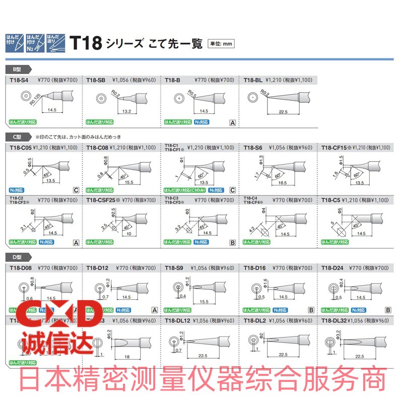 オリジナル日本 HAKKO 白色光 T18-C1 C2 T18-C3 T18-C4 T18-C5 ルオ鉄ヘッド高品質