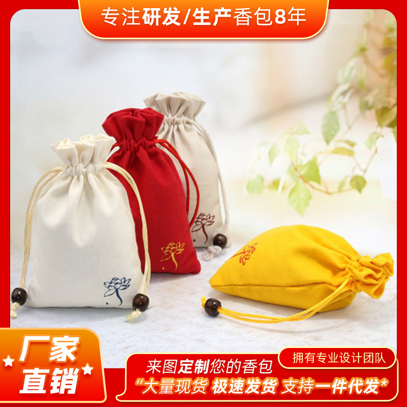 綿の細いキャンバスバッグの香袋の空袋の薬局の香袋の贈り物の錦嚢のハスの花の麻の袋の印のロゴの収納袋