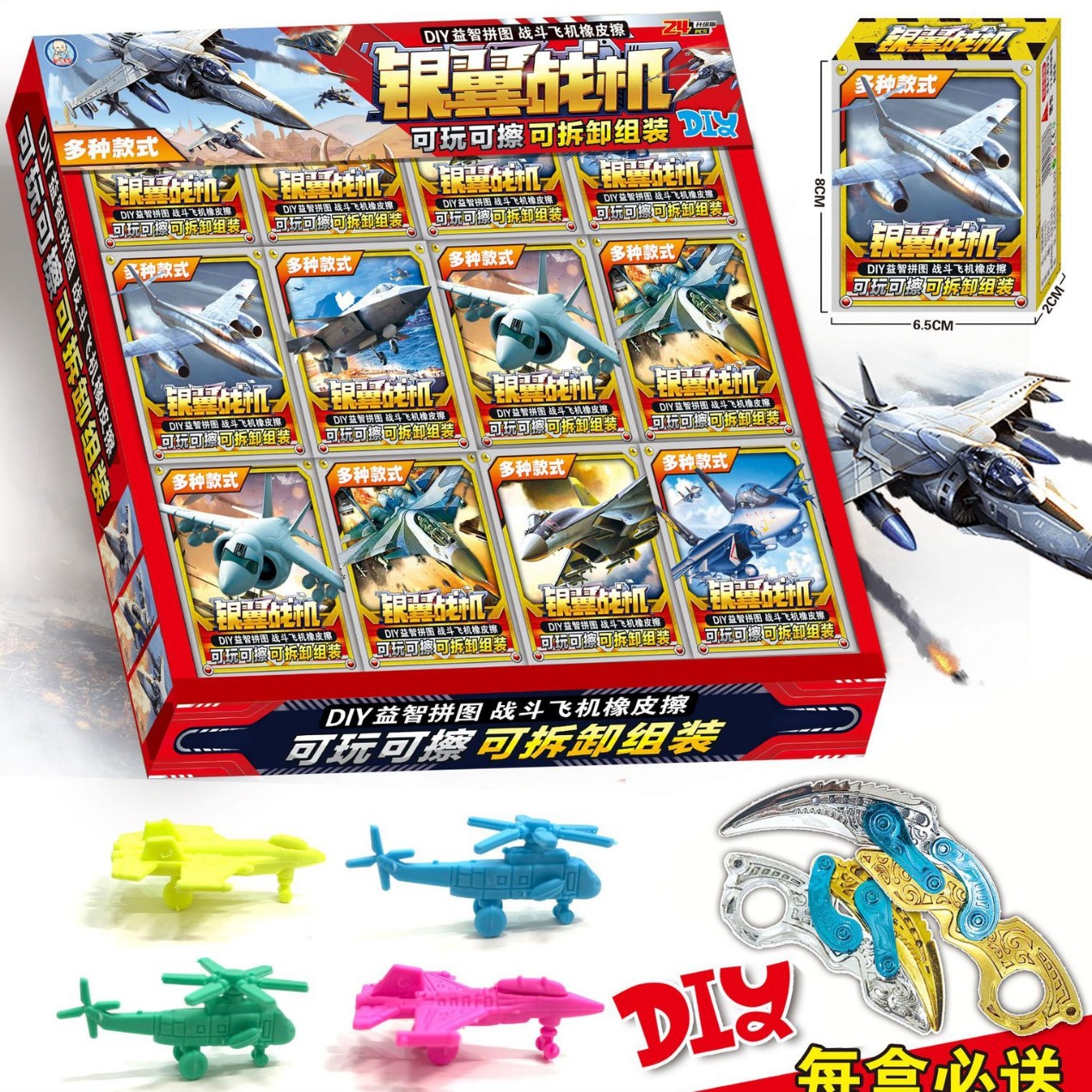 飛行機の戦闘機の消しゴムの模型を合わせます。