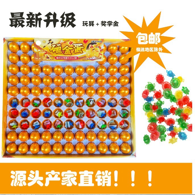 メーカーのアップグレード版のおもちゃの奨学金は金の卵の卵を割って引き出します。