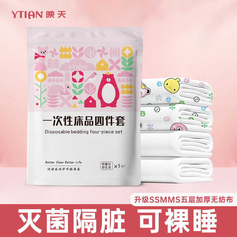 ホテル旅行用ポータブル使い捨てベッドシーツと掛け布団カバー、出張用4点セット、旅行用寝台、防塵