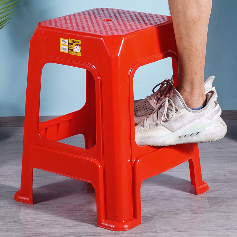 プラスチックの腰掛けの家庭用の厚い高さの腰掛けの大人のゴムは赤い腰掛けの客間のレストランの大きい段の椅子を積み重ねることができます。