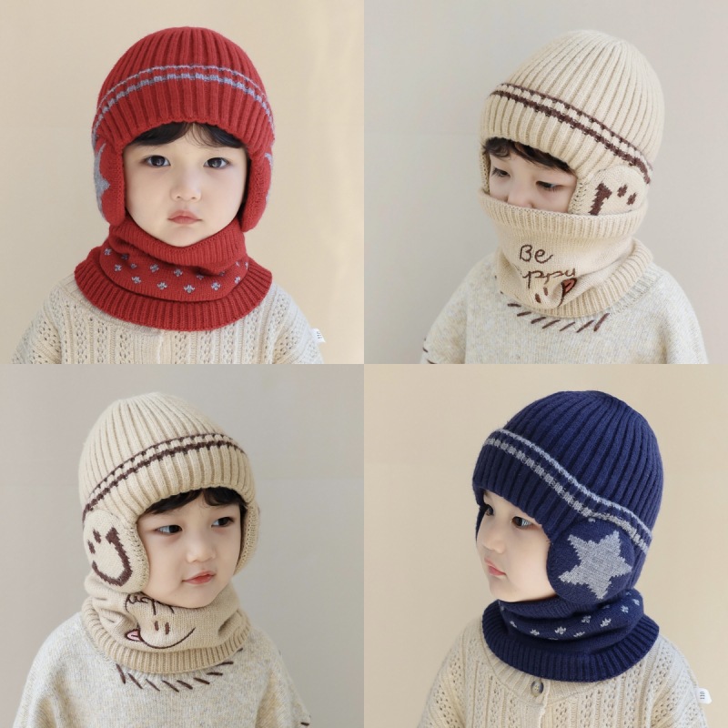 ニット保温耳保護帽子子供秋冬防寒保温マフラーセーター