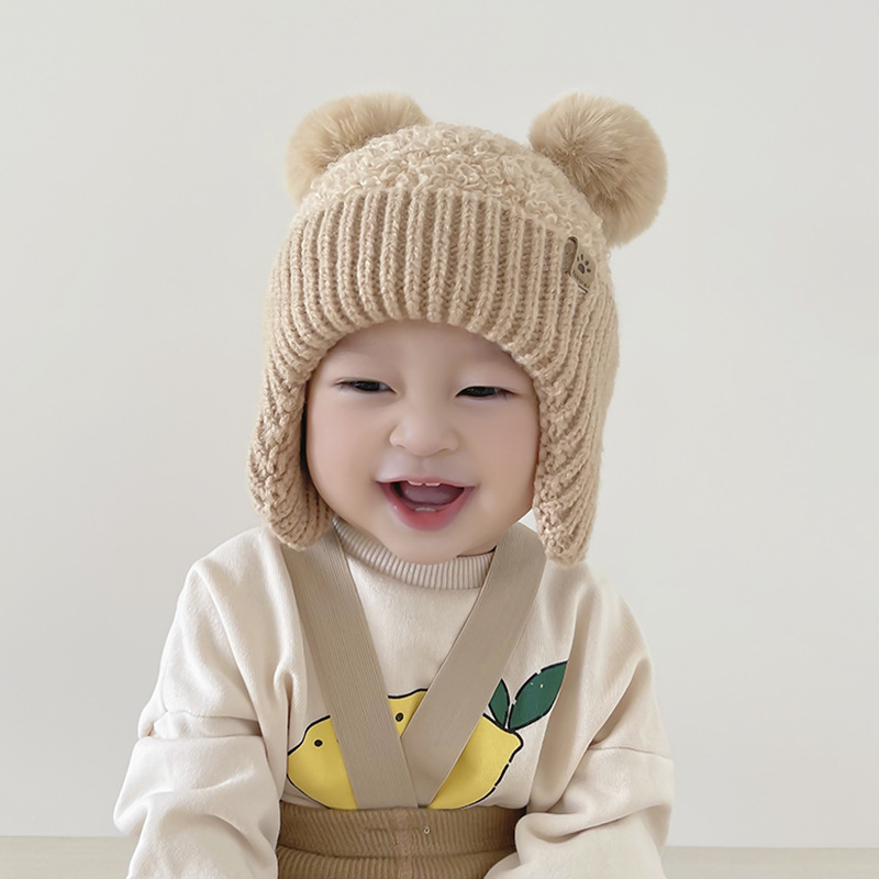 ベビー帽子 秋冬 新生児 ニット帽 男女兼用 保温 耳当て付き ウール帽子 フード付き帽子 丸型