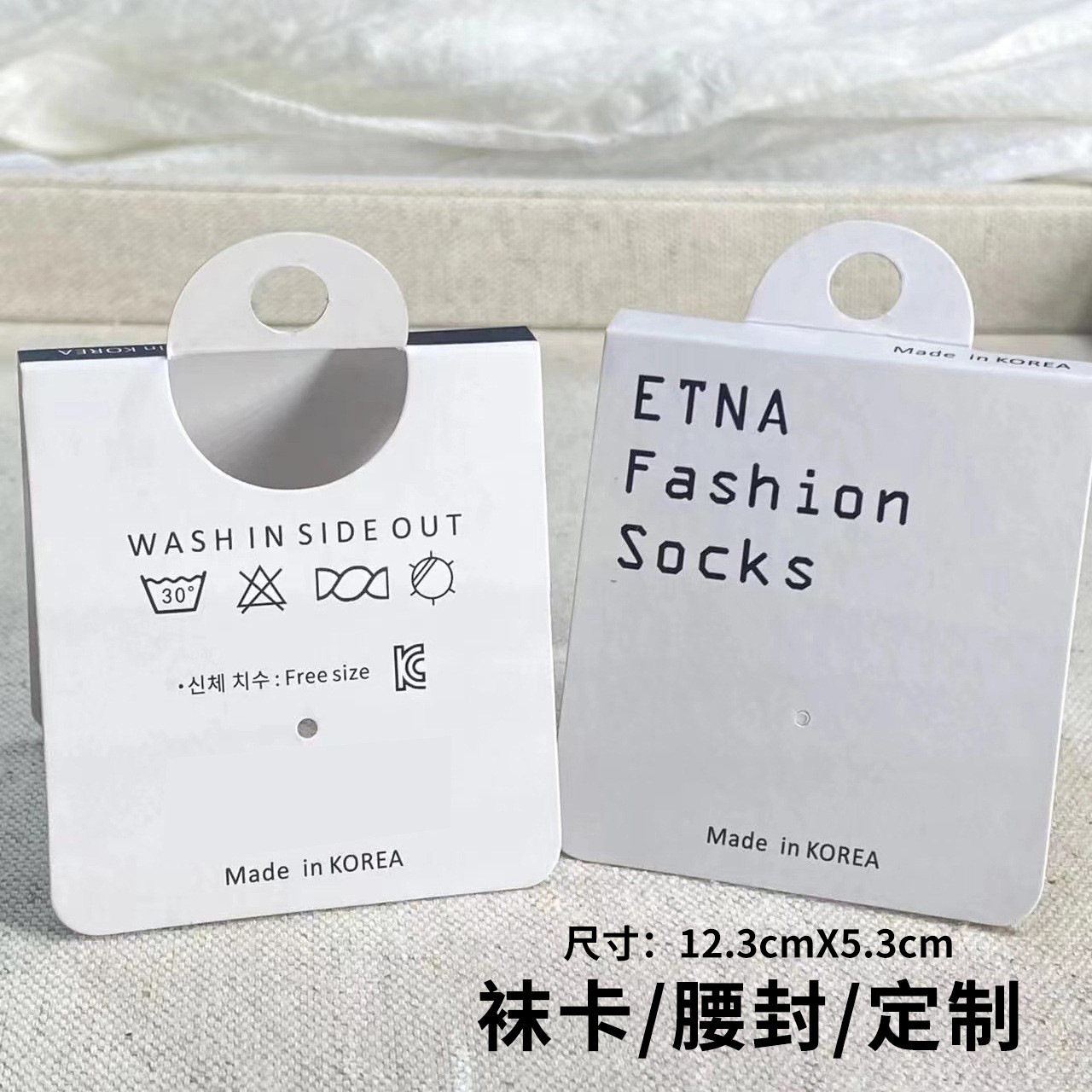 靴下カードの折り返しカードの頭にロゴカードを印刷して紙のラベルを挟みます。