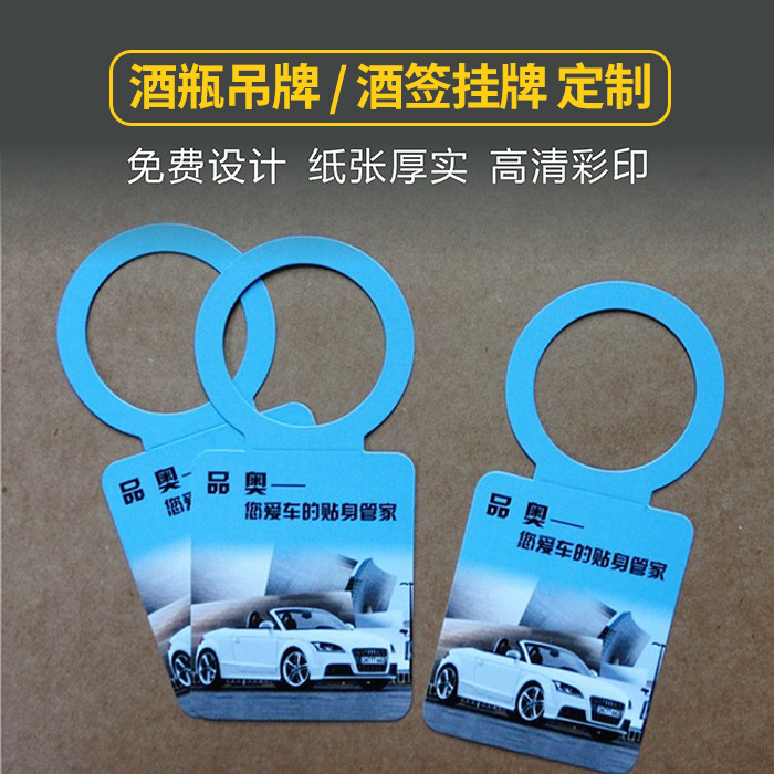 異形の酒の瓶の口のつり札の札の広告の販促のカードの首のボトルネックの値札は紙のカードの瓶を掛けます。