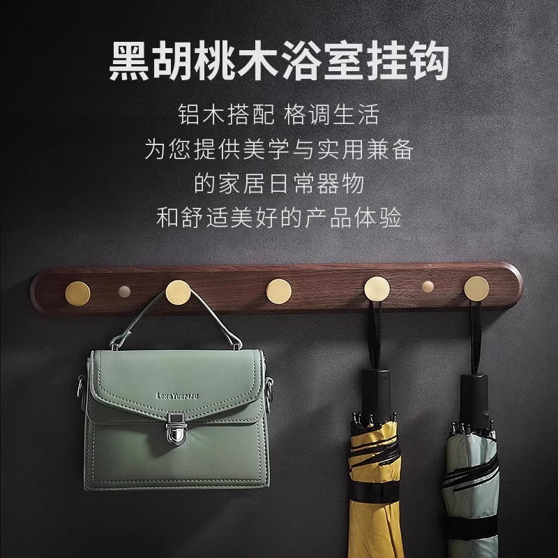 ウォールナットフック無垢材ハイエンドゴールデンパンチフリーベッドルームエントランス玄関ドア壁掛け洋服フック