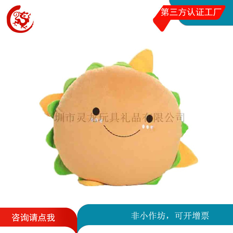 かわいいアイデアのぬいぐるみのハンバーガーは枕のクッションを抱いて綿の電気刺繍の笑顔のぬいぐるみのぬいぐるみを入れてカスタマイズします。