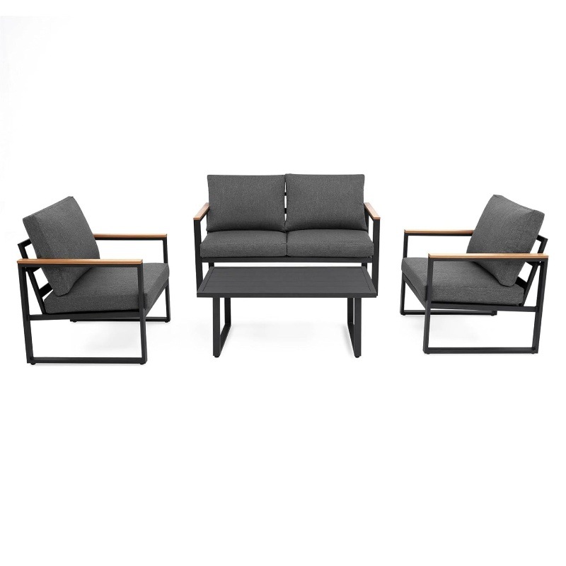 屋外ソファ 4 ピースガーデンパティオソファセットアルミプラスチック木製家具ソファセットとティーテーブルの組み合わせ
