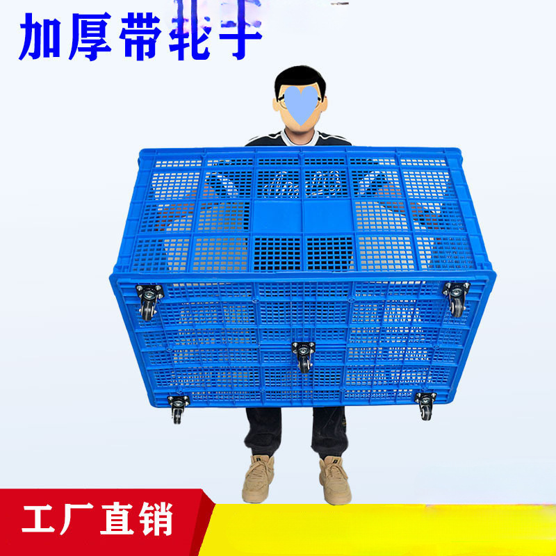大型プラスチック回転かごに車輪付き長方形の厚いプラスチックかご回転箱宅配便収納かごの青い白色
