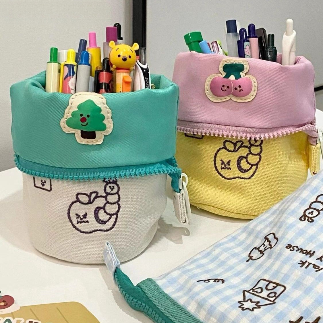 日本の創意的な引き出しの筆の袋の高い顔の値は縦にひっくり返します大容量の女子学生の境界の袋の学生のかわいい刺繍の鉛筆の袋
