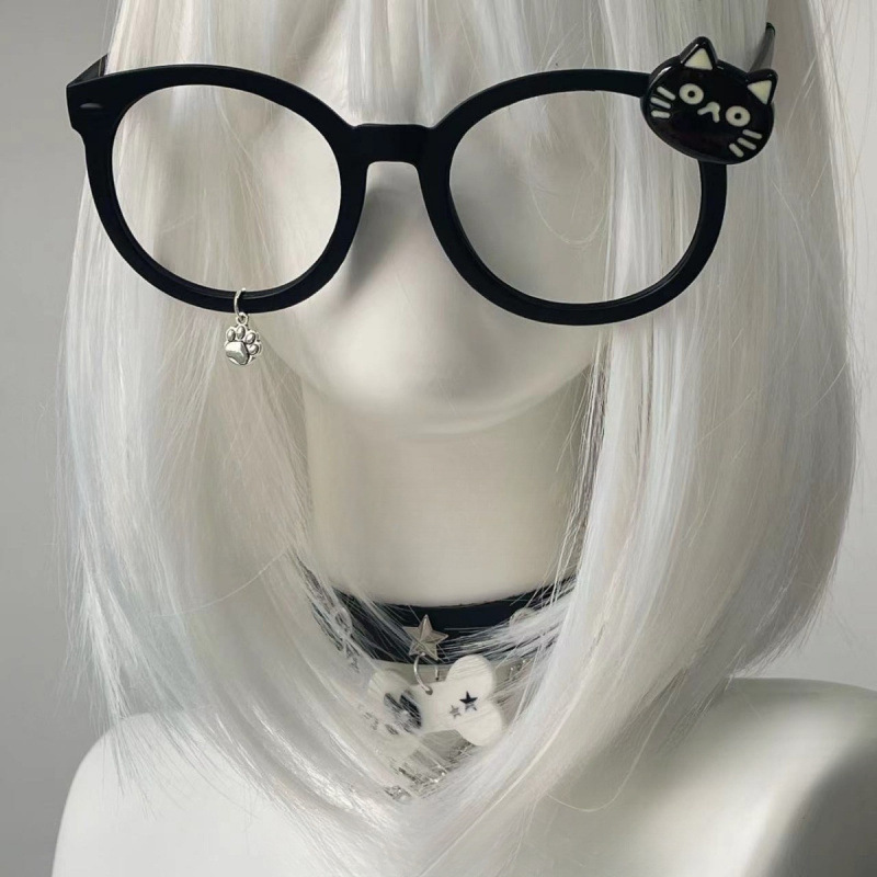 日本のかわいい甘い水色ピンク猫の爪メガネフレーム顔を大きく見せる小さなサブカルチャーかわいい写真二次元ハーフチタンクリップ