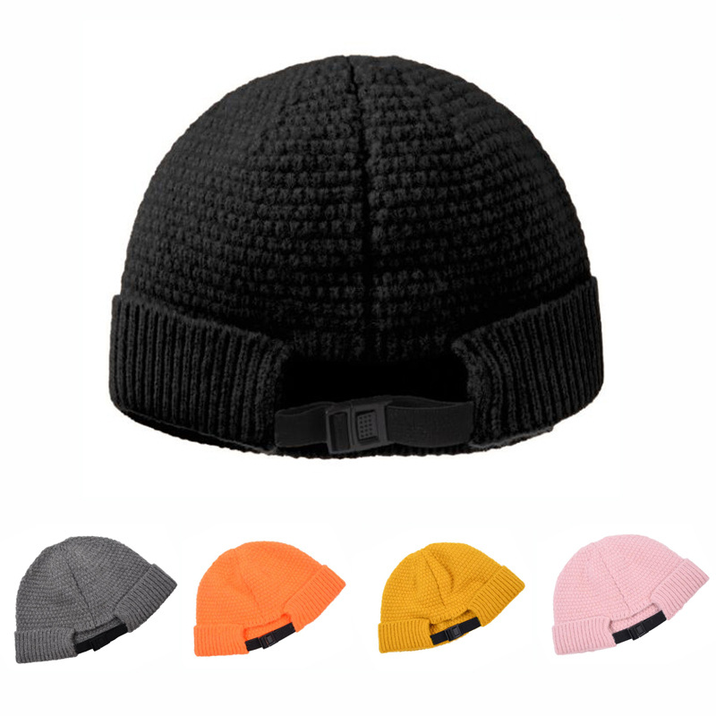 クロスボーダー瓜皮帽単色毛糸帽男女ニット帽のカール調整ボタンファッション成人保温帽子