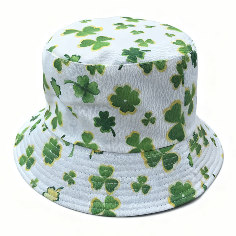 クロスボーダー四葉草プリント漁師帽男女両面に盆帽をかぶっています。